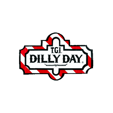 A vibrant red and white striped sign featuring the text 'T.G.I. DILLY DAY.', a playful nod to Dillinja and drum and bass culture.