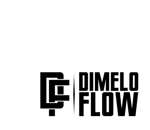 Animated black and white logo for Dimelo Flow, a prominent figure in reggaeton music, featuring stylized text.