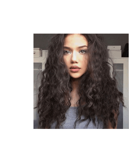 Dinadenoire, known for her beautiful long curly hair, gazes directly at the camera with a captivating look.
