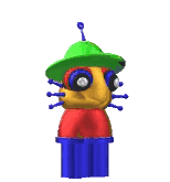 Dingle, the unique character from the Friday Night Funkin' Dave and Bambi: Golden Apple mod, with his green hat and colorful design.