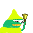 Dink Donk, a charming green frog wearing a yellow hat, joyfully rings a golden bell in this delightful animation.