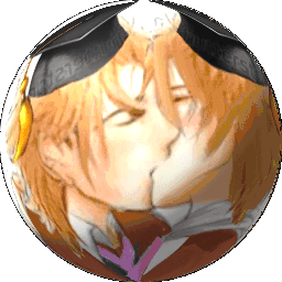 An animated sticker featuring Dio in an anime style, kissing another character within a rotating spherical effect.