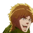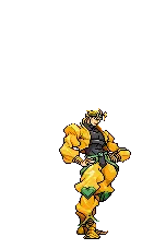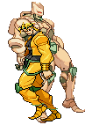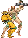 Pixel art sticker featuring Dio Brando from JoJo's Bizarre Adventure, standing alongside his powerful Stand, The World.