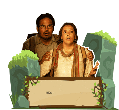 Eva Longoria and Michael Pena as Dora's parents in 'Dora and the Lost City of Gold' react with shock, exclaiming '¡Dios Mío!' in a jungle adventure.
