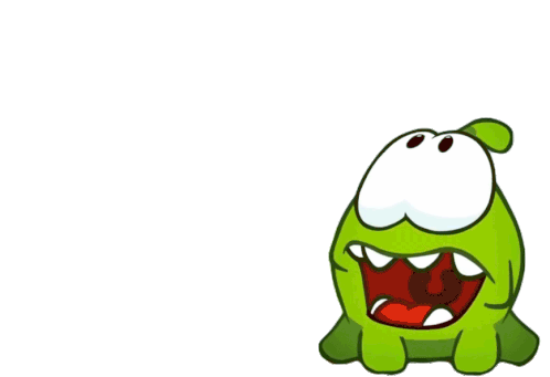 Om Nom from Cut the Rope transitions from happy to a sad, dejected, and gloomy expression, showing disappointment.