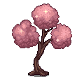 A beautiful pixel art sakura tree with delicate pink petals gently falling, creating a serene scene.