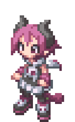 Raspberyl from Disgaea 3, a pixel art character, shows an angry or determined expression in this animated sticker.
