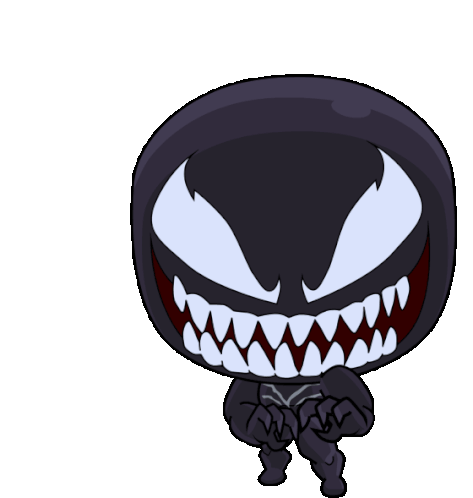 A cute chibi Venom character shows a disgusted expression, sticking out its long tongue and looking grossed out.