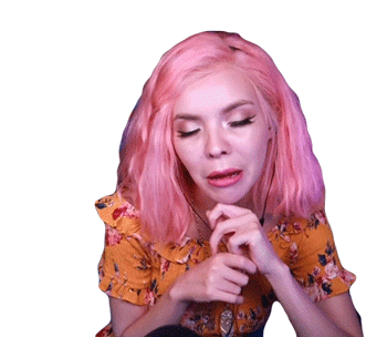 Witchy Twitchy, a woman with pink hair, expresses disgust with an eye roll and hand gestures.