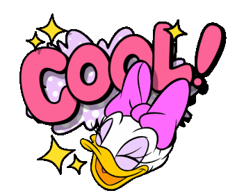 Daisy Duck looking happy with the word "COOL!" and sparkles, conveying a positive and excited mood.