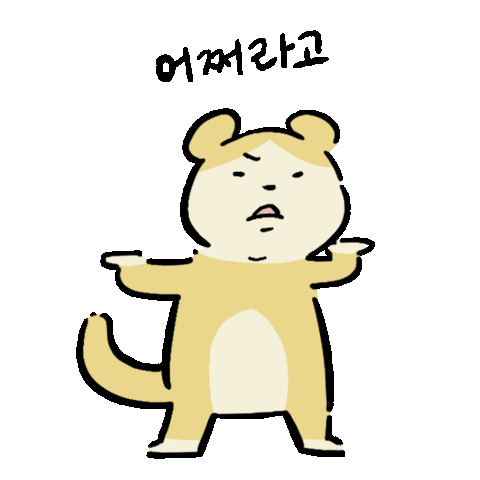 A cartoon hamster-like character shows disdain with an eye roll and outstretched arms, featuring the Korean text '어쩌라고'.