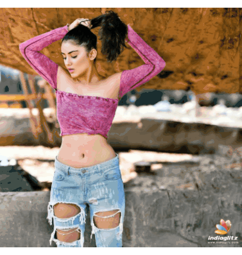 Divya Cd poses confidently in a pink crop top and ripped jeans, tying her hair in a high ponytail.