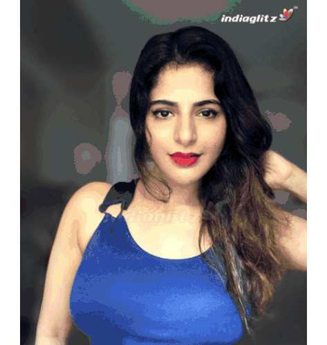 Divya Cd poses confidently in a vibrant blue tank top, showcasing her style with a captivating gaze.