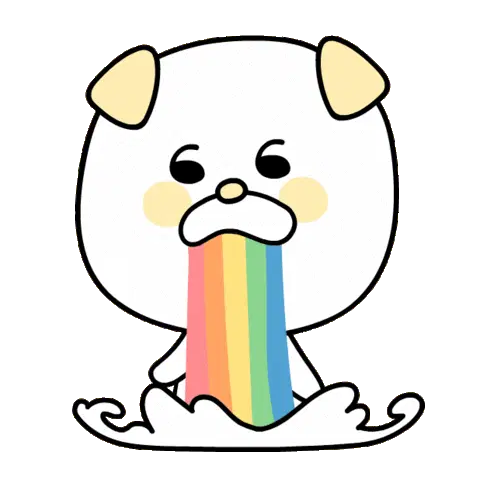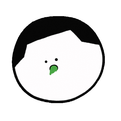 A simple cartoon character with a black haircut and white face vomits green liquid, depicting nausea or disgust.
