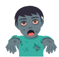 A cartoon zombie boy, part of the Foekoe collection, with pale green skin, red eyes, and torn clothes, arms outstretched.