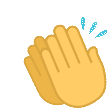 Animated sticker featuring a pair of yellow cartoon hands clapping with blue effects, associated with Dm4uz3 and Foekoe.