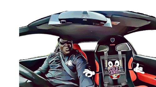 Dmo Dmoarmy drives a car with a cartoon Cold Candy character in the passenger seat, giving an 'OK' sign.