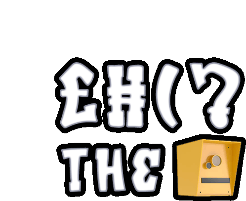 An animated sticker featuring stylized white text with a black outline, spelling out 'EH(? THE' in a bold, graffiti-like font.