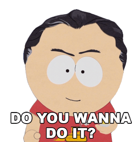 Billy Miller from South Park, with a curious and slightly mischievous expression, asks "Do you wanna do it?".