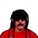 A pixelated Dr Disrespect, also known as Docnotl, wearing sunglasses and a red shirt, with a subtle shake. Features Forsen.