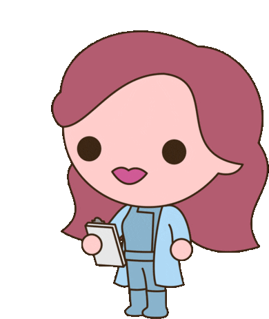 Chibi female character, reminiscent of Marvel's Doctor Strange, in a light blue outfit, holding a clipboard with a friendly smile.