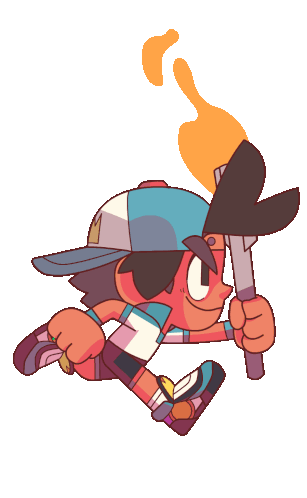 Otto from Dodgeball Academia runs energetically with a flaming Olympic torch, ready for a race or event.