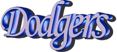 Animated logo for the Dodgers baseball team, associated with Deaf Dodgers, Danny Vega, and Marco Gomez, featuring blue and purple letters.