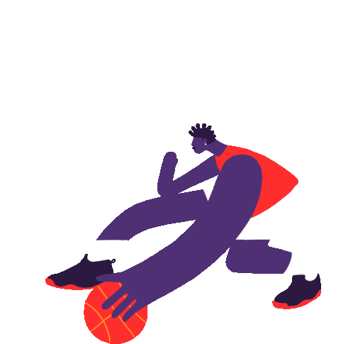 A stylized basketball player in a red tank top and white shorts skillfully dribbles and dodges with a basketball.