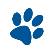 A blue dog paw print rotates smoothly, perfect for adding a playful and pet-friendly touch to any digital message.