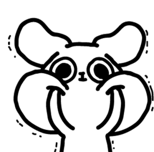 A black and white cartoon dog with puffed cheeks and a wide smile trembles with a scared or nervous expression.