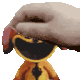 A striking black and white pixel art sticker, featuring a horned figure, possibly representing the character Dogday.