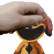 Animated sticker featuring a cartoon hand gently holding the smiling purple character Dogday, from Poppy Playtime.