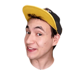 A young man from Operacao Cinema, wearing a yellow and black cap, makes a funny face before breaking into a wide smile.