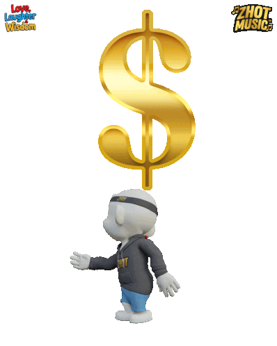 a cartoon character wearing a zhot shirt is holding a dollar sign