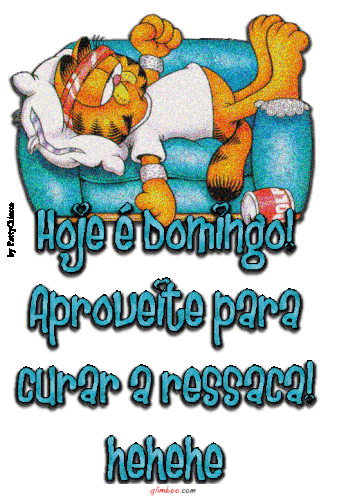 Garfield the cat relaxes on a couch with the text 'Hoje é Domingo' (Today is Sunday) appearing, perfect for weekend vibes.