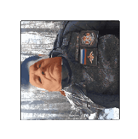 Dominogamer Marian's face on a rotating cube, wearing a camouflage jacket with a Russian flag patch.
