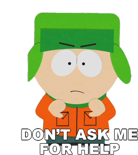 Kyle Broflovski from South Park animated sticker, angrily stating "Don't Ask Me For Help." His expression shows frustration.
