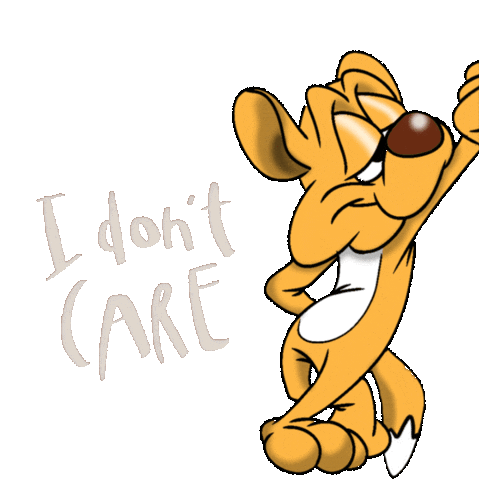A cartoon character, possibly Pashmak or from elenaxcomic, leans casually with the text 'I don't CARE' displayed.