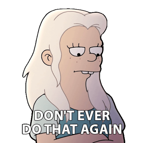 Princess Bean from Disenchantment expresses strong disapproval with the phrase 'Don't Ever Do That Again'.