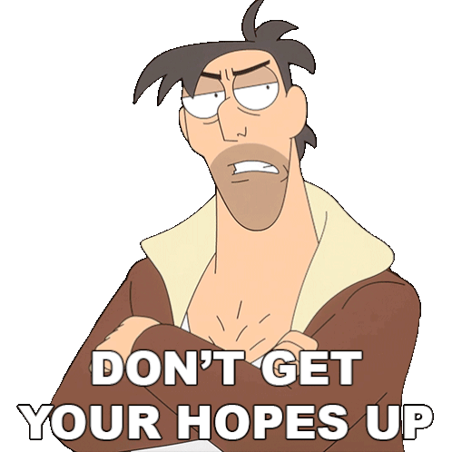 Rip Digman, a cartoon character, expresses skepticism with the phrase 'Don't get your hopes up,' crossing his arms.