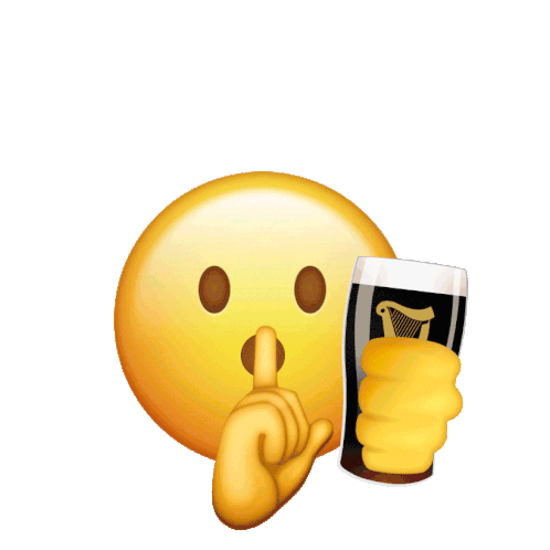 A yellow emoji with a finger to its lips, signaling 'shhh', next to a glass of Guinness beer for the Rugby World Cup.