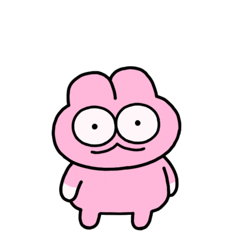 A cute pink cartoon character with big eyes shrugs, looking confused and asking a question.