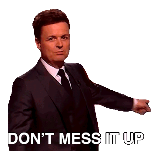 Declan Donnelly from Britain's Got Talent sternly warns, 'DON'T MESS IT UP,' in this animated sticker.