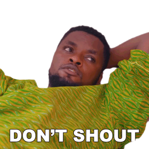 Mazi Nduka, a man in a green shirt, calmly advises "Don't Shout" while relaxing with his hands behind his head.