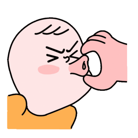 Cartoon person with a finger pushing their nose, signaling to be quiet and not speak.
