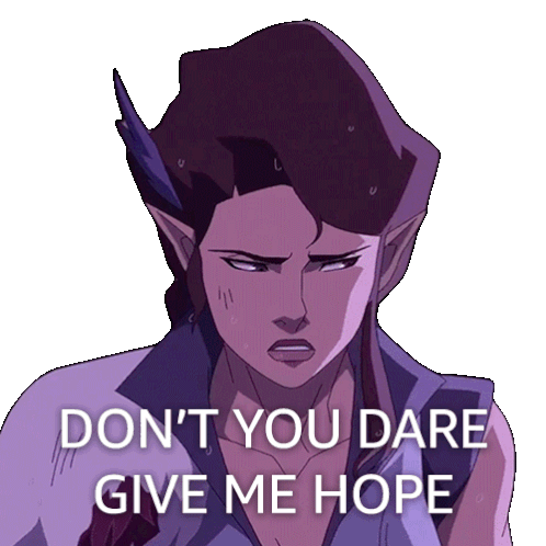 Vex'Ahlia from The Legend of Vox Machina expresses frustration with "Don't you dare give me hope."