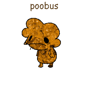 Doobus Goobus's animated brown poop wiggles with the text 'poobus' above it, creating a funny and stinky reaction.