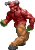 A pixel art illustration of the Baron of Hell from Doom, a red devil with horns, spinning while holding a green plant.