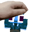 A stylized hand holds the iconic blocky head of a Minecraft character, associated with Doopter and MCYT, on a white background.