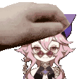 Animated sticker featuring Dori from Genshin Impact, receiving affectionate head pats from a hand.